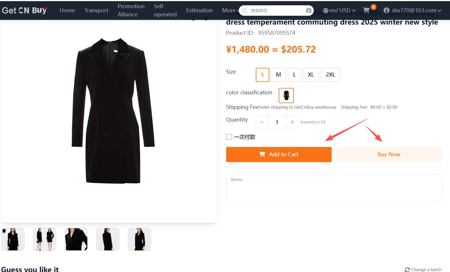 Method 1: GetCnBuy supports the information retrieval of 99% of Taobao/Tmall/1688 products. You can directly select the product color, size, and quantity, and click "Add to Cart" or "Buy Now"