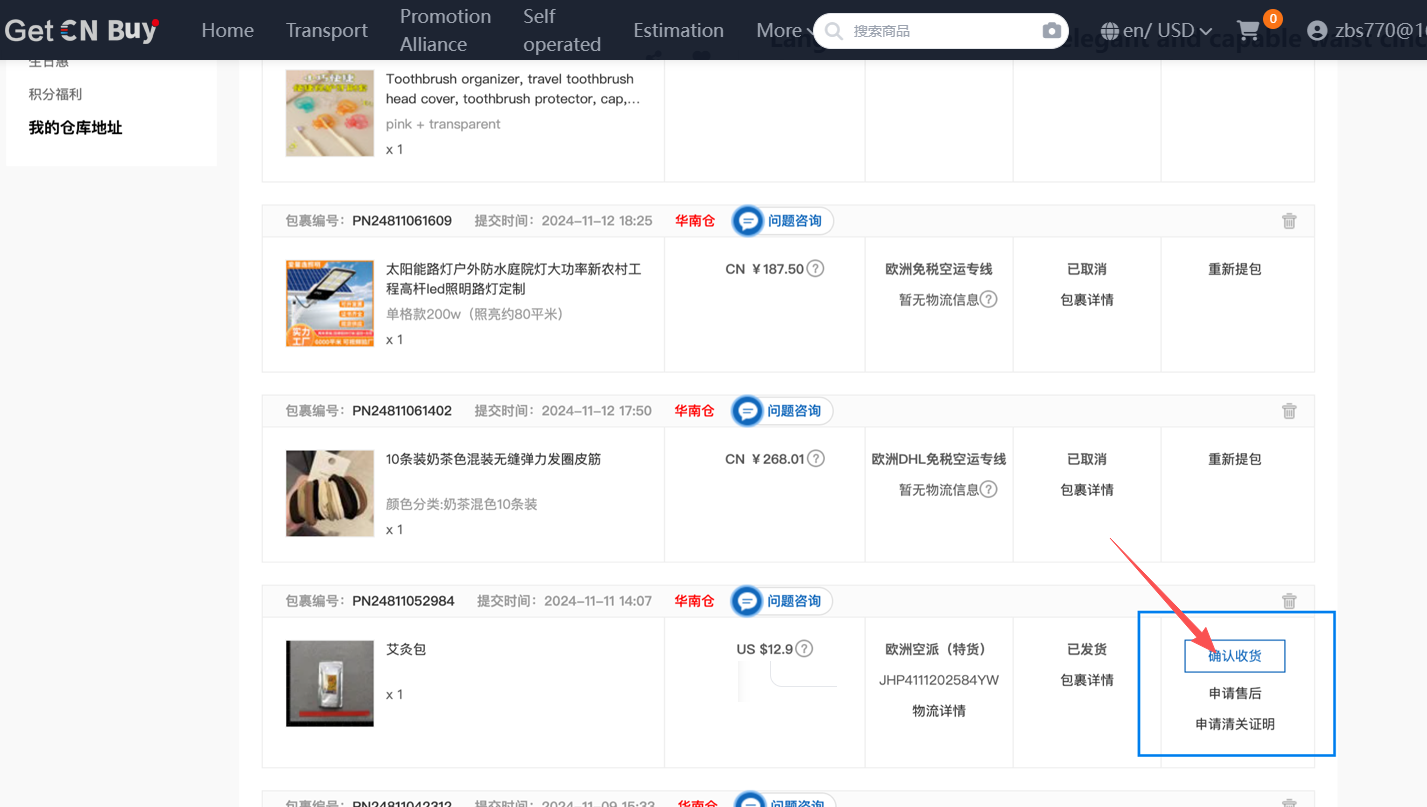 After receiving the package, confirm receipt in "My GetCnBuy" - "My Packages"; if there are any issues, you can submit an after-sales application on the corresponding package slip