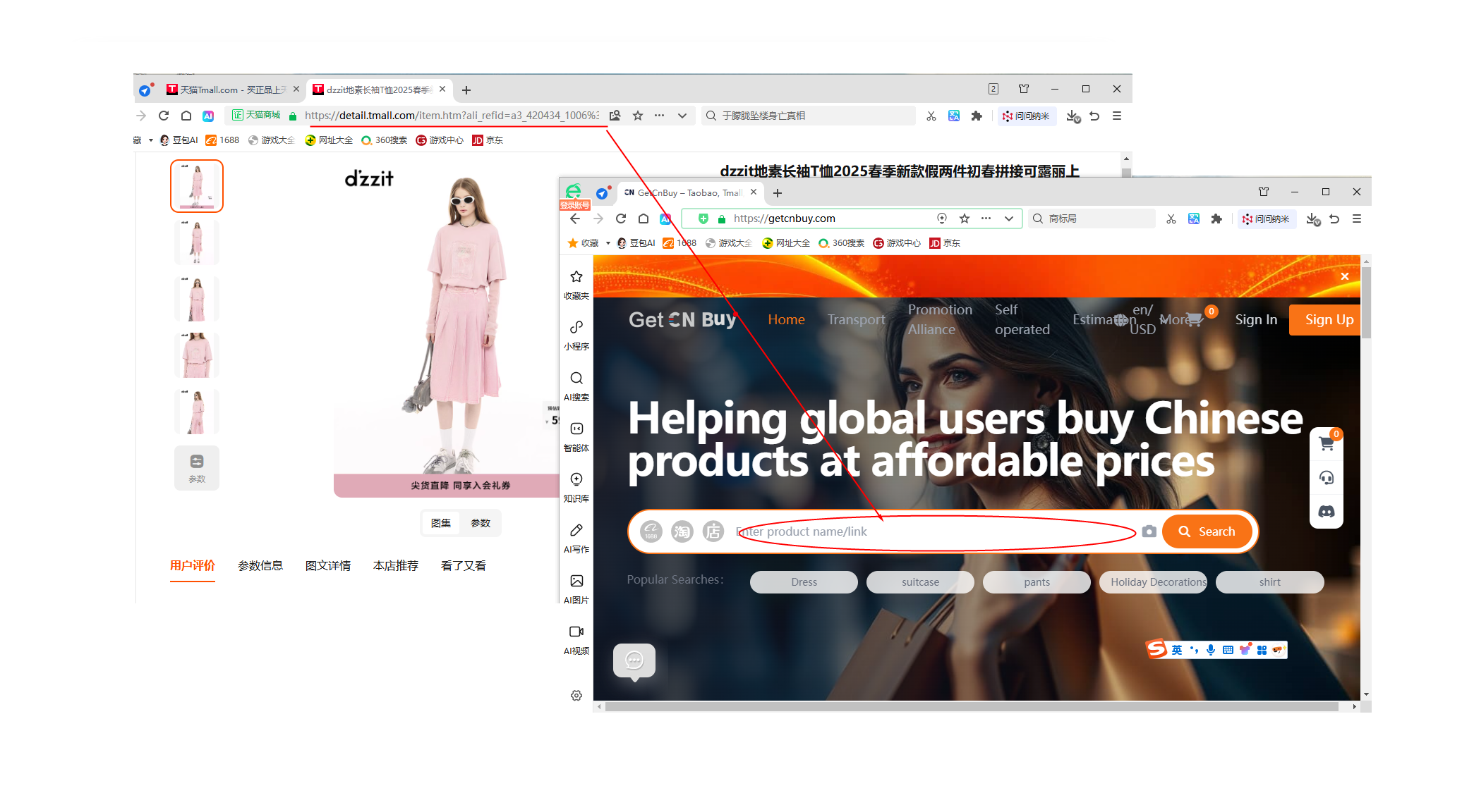 Method 1: Find the product you want to purchase on Taobao/Tmall/1688.com platform, copy the link, and paste the product URL link into the search box