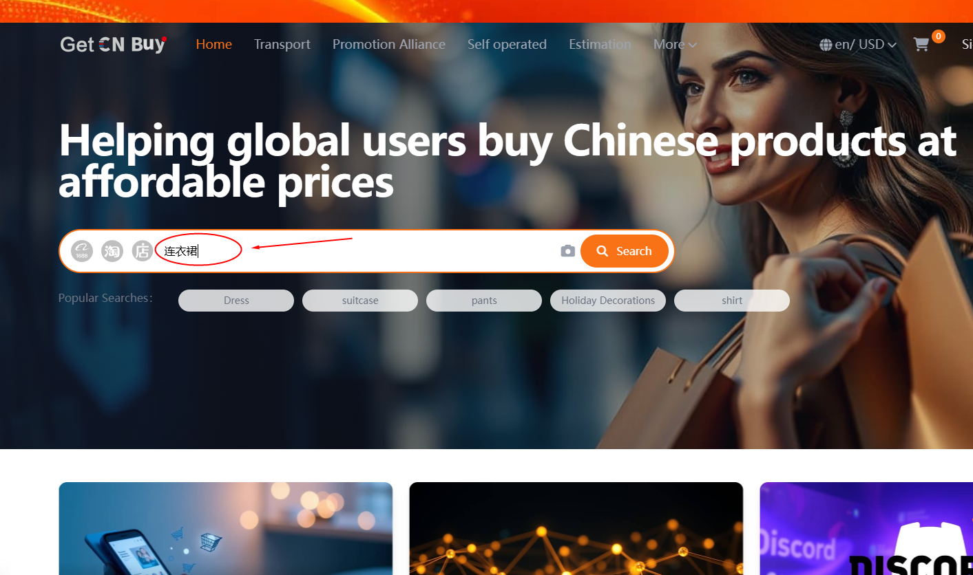 Method 2: Enter the product name in the GetCnBuy search box and select from the recommended products on Taobao, Tmall, and 1688